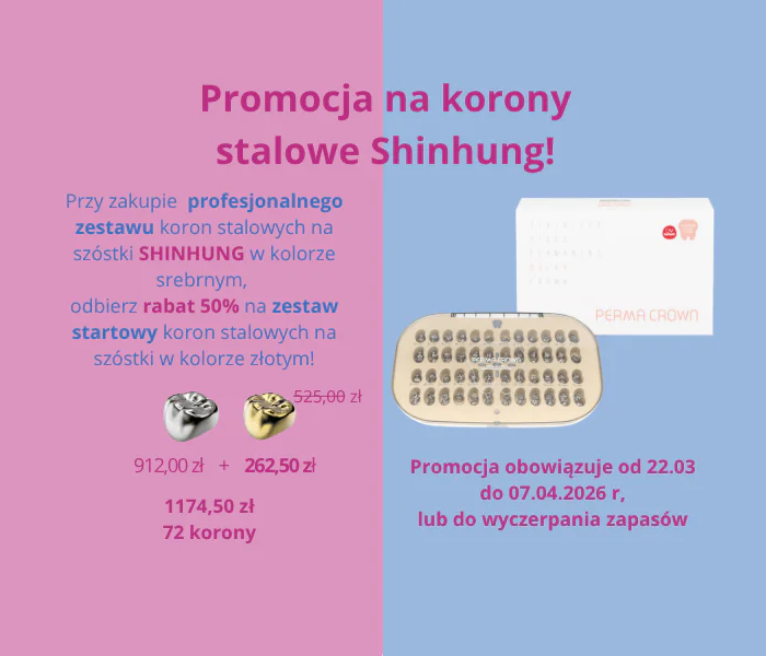 W naszej ofercie znajduje się ponad 100 starannie dobranych produktów do stomatologii dziecięcej – w tym estetyczne korony stalowe i cyrkonowe, zgodne z najnowszymi standardami leczenia małych pacjentów.
