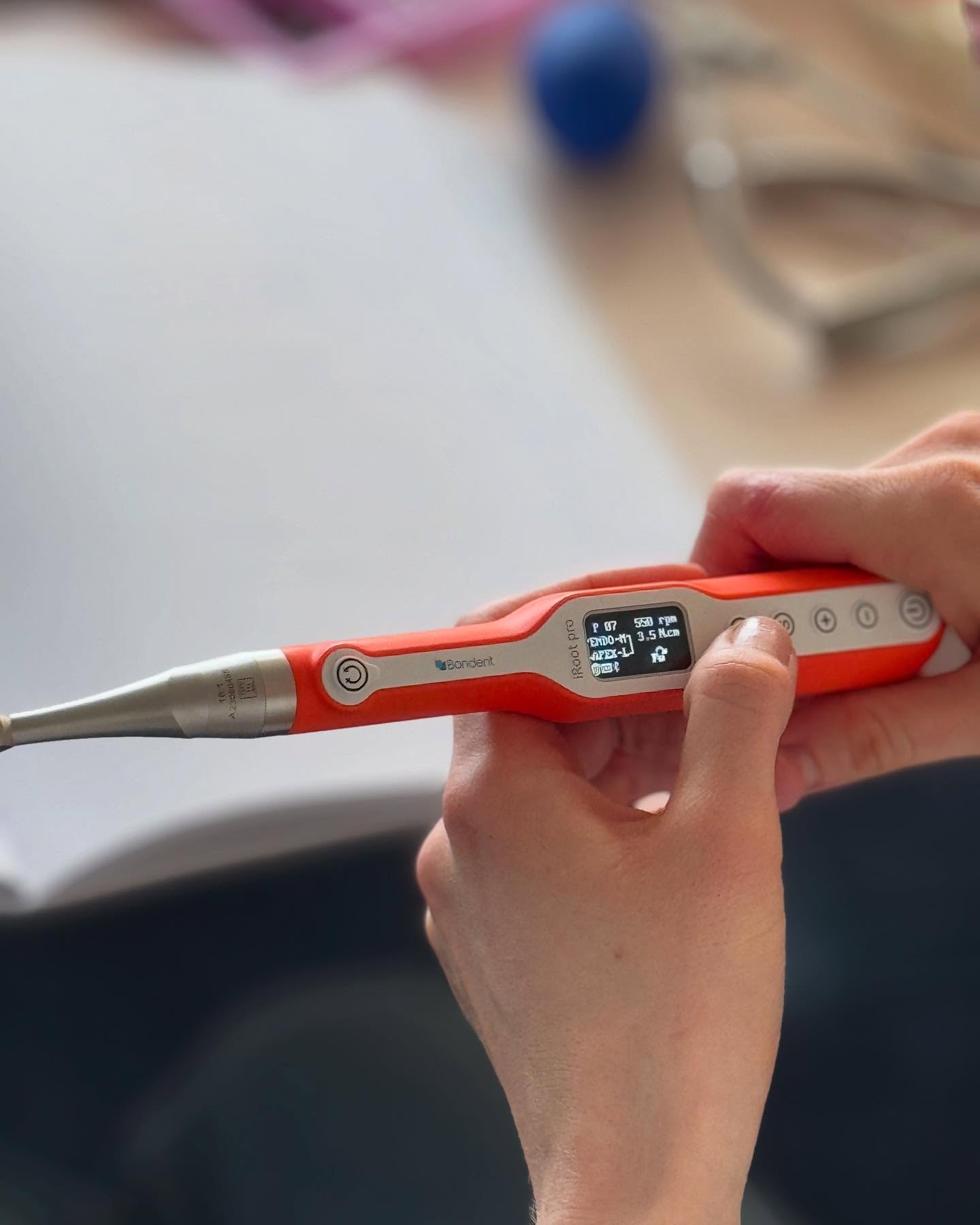 - Praktinis pieninių kandžių ir krūminių dantų modelių endodontinis gydymas naudojant „Bondent“ rotacinius instrumentus. Belaidžiai endodontiniai mikrovarikliai.