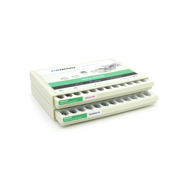 Pierścienie trzonowcowe Denovo zostały zaprojektowane tak, aby pasowały zarówno do zębów trzonowych mlecznych, jak i stałych, ze stopniowym zwiększaniem wysokości w miarę wzrostu rozmiaru pierścienia. Dzięki standardowej twardości zapewniają maksymalną plastyczność i dopasowanie, oferując jednocześnie solidną, a zarazem elastyczną bazę do wszelkich zabiegów pedodontycznych i ortodontycznych z użyciem pierścieni.