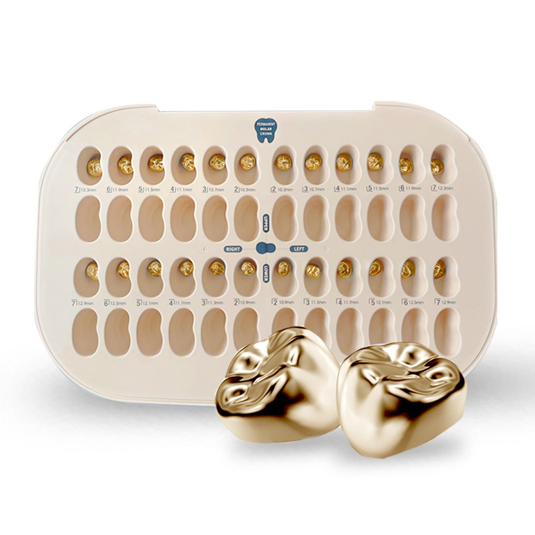 2. Zestaw profesjonalny zawiera 48 koron stalowych SHINHUNG na pierwszy trzonowiec stały, po 2 sztuki we wszystkich dostępnych rozmiarach od 2-7.