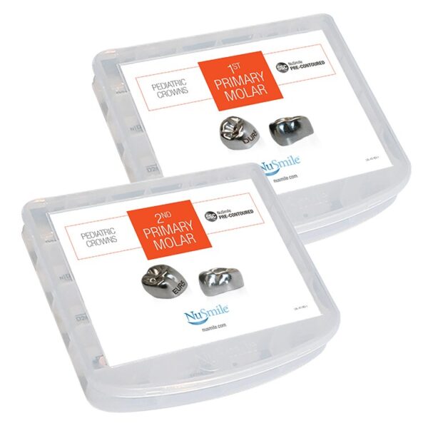 Zestaw zawiera korony stalowe NuSmile na pierwszy i drugi trzonowiec mleczny. Zestaw jest dostępny w trzech wariantach: